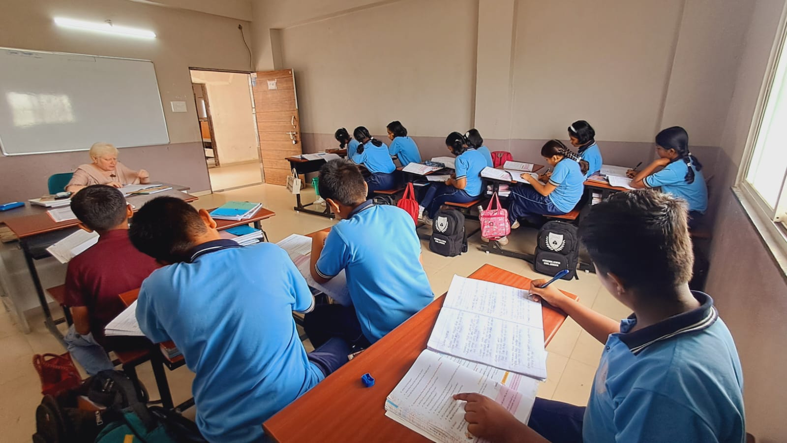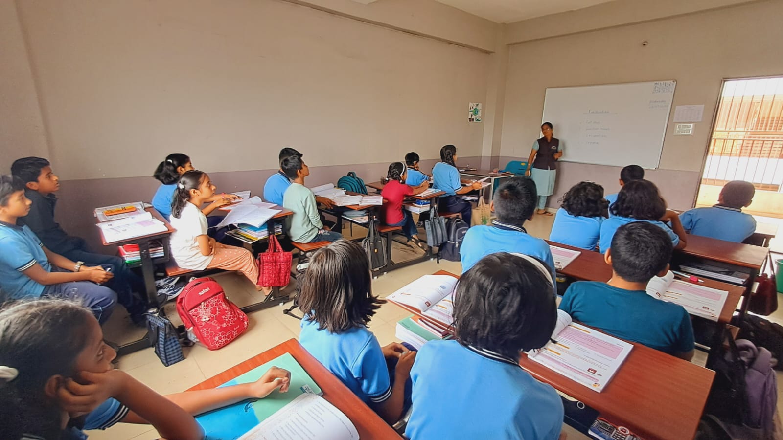 In a classroom, students have access to various facilities that facilitate their learning experience. These typically include desks or tables and chairs for seating, a whiteboard or blackboard for the instructor to write on, audiovisual equipment such as projectors or screens for presentations, and sometimes computers or tablets for interactive learning activities. Additionally, classrooms may have storage space for books, supplies, and educational materials, as well as proper lighting and ventilation to create a conducive learning environment. Some classrooms are also equipped with specialized equipment depending on the subject being taught, such as science labs or art studios. Overall, classrooms are designed to support the educational needs of students and instructors alike.